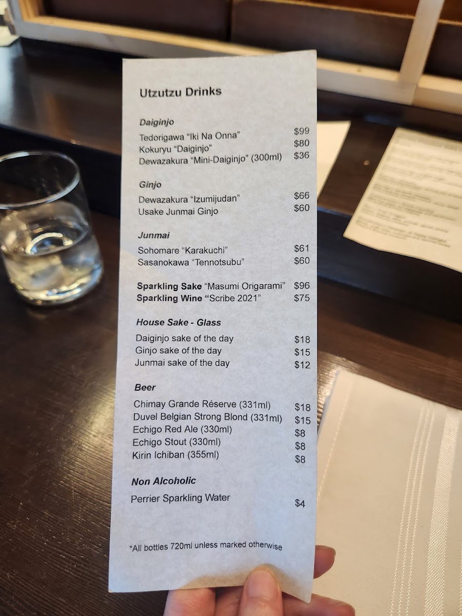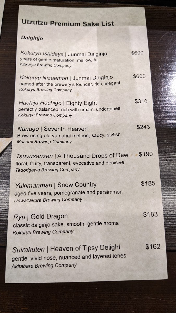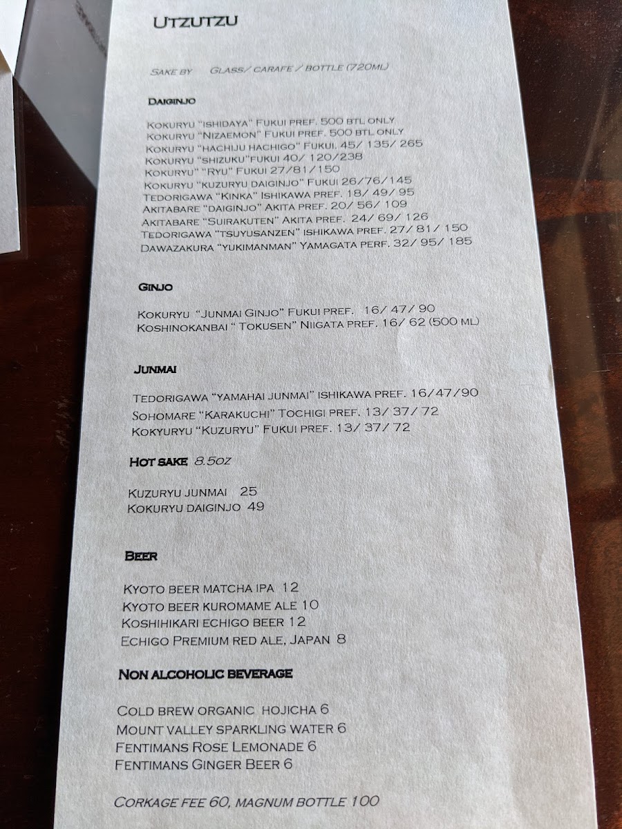 As a concluding reflection on the menu at Utzutzu Alameda (1428 Park St, Alameda, CA 94501), the beverage-focused selection feels intentional, refined, and deeply rooted in Japanese tradition. Rather than overwhelming guests with excess, Utzutzu curates a thoughtful lineup that highlights craftsmanship and balance. The sake program is clearly the heart of the menu, led by elegant Daiginjo expressions such as Tedorigawa “Kinka” (Ishikawa Pref), Akitabare “Suirakuten” (Akita Pref), Kokuryu “Ryu” (Fukui Pref), and Dewazakura “Yukimanman” (Yamagata Pref)-each offering clean aromatics and a polished finish that will appeal to both seasoned sake enthusiasts and curious newcomers.